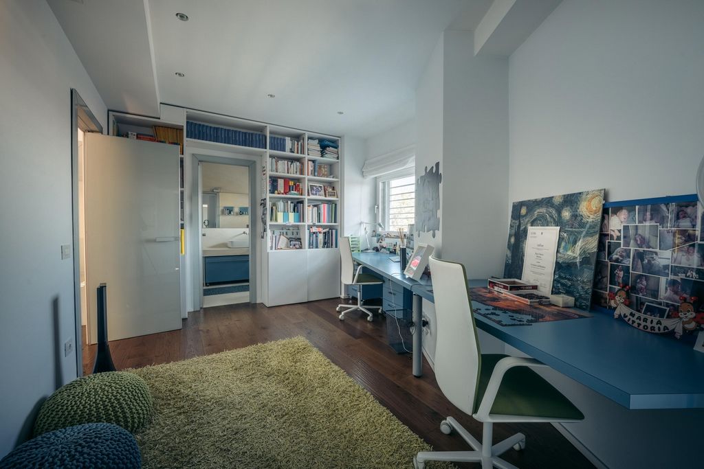 O seu estilo arquitetónico, inspirado nas residências americanas, destaca-se pelos seus amplos terraços distribuídos por vários níveis, num total de 410 metros quadrados, e pela esplêndida piscina privada. O branco dominante dá um toque moderno, enquanto o design refinado e as linhas sinuosas criam uma atmosfera acolhedora e refinada. No rés-do-chão, uma majestosa sala de receção com lareira abre-se para a sala de jantar, ligada a uma cozinha totalmente mobilada. No mesmo nível há um belo terraço, um quarto de hóspedes com casa de banho privativa, uma segunda casa de banho, uma área de escritório e um apartamento de serviço independente com lavandaria, sala de engomadoria, quarto e casa de banho. O primeiro andar abriga dois quartos amplos, ambos equipados com closets, acompanhados por dois banheiros elegantes. Há também um terceiro quarto, atualmente usado como um espaçoso closet. Todos os quartos têm acesso a um terraço no último piso. O piso da piscina (cave) é inteiramente dedicado ao relaxamento e bem-estar, com um ginásio totalmente equipado, duas casas de banho, uma sala de hobby, uma zona de lavandaria, uma sala preparada para a instalação de um banho turco e caves. O nível é completado por uma grande garagem de 47 metros quadrados, equipada com uma estação de carregamento (wallbox) e acessível através de uma porta basculante automática. O parque de 1500 metros quadrados, com atenção aos mínimos detalhes, é embelezado com um sugestivo sistema de iluminação e uma piscina com purificação automatizada por meio de inteligência artificial. Adega adicional e salas técnicas estão localizadas no porão.
