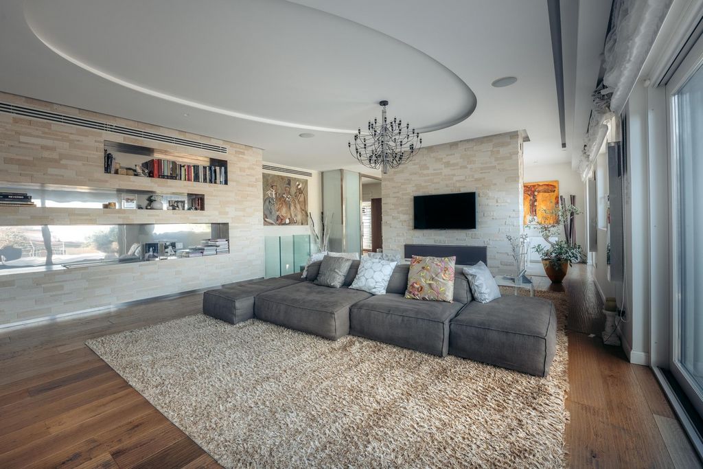 Jeho architektonický styl, inspirovaný americkými rezidencemi, vyniká velkými terasami rozloženými na několika úrovních, celkem 410 metrů čtverečních, a nádherným soukromým bazénem. Dominantní bílá barva dodává moderní nádech, zatímco rafinovaný design a vlnité linie vytvářejí přívětivou a rafinovanou atmosféru. V přízemí se majestátní přijímací místnost s krbem otevírá do jídelny, propojené s plně zařízenou kuchyní. Na stejné úrovni je krásná terasa, ložnice pro hosty s vlastní koupelnou, druhá koupelna, kancelářský prostor a samostatný servisní byt s prádelnou, žehlírnou, ložnicí a koupelnou. V prvním patře se nachází dvě velké ložnice, obě vybavené šatnami, doplněné dvěma elegantními koupelnami. Dále je zde třetí pokoj, který je v současné době využíván jako prostorná šatna. Všechny pokoje mají přístup na střešní terasu. Podlaha bazénu (suterén) je zcela věnována relaxaci a pohodě, s plně vybavenou posilovnou, dvěma koupelnami, hobby místností, prádelnou, místností zřízenou pro instalaci turecké lázně a sklepy. Úroveň je doplněna velkou garáží o rozloze 47 metrů čtverečních, vybavenou nabíjecí stanicí (wallbox) a přístupnou přes automatické výklopné dveře. Park o rozloze 1500 metrů čtverečních, s důrazem na nejmenší detaily, je vyzdoben sugestivním systémem osvětlení a bazénem s automatickým čištěním pomocí umělé inteligence. V suterénu se nachází další sklepní a technické místnosti.
