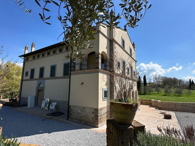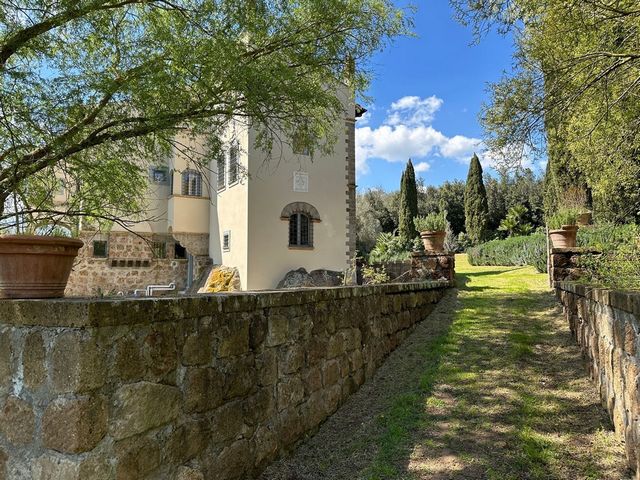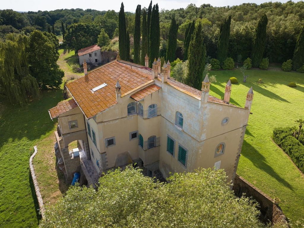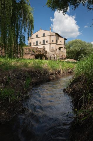 - Dining Room Located in a privileged position on the outskirts of Vetralla, the Marchionato di Paternostro Estate stands like a jewel set in the rich landscape of Tuscia, just sixty minutes by car from Rome via the motorway. A place where historical, artistic and natural excellences converge, embracing a thousand-year history and breathtaking landscapes. In its surroundings, Viterbo, with its imposing medieval historic center, stands as the "City of the Popes", famous for its thermal waters, reachable in just twenty minutes via a highway. A short distance away are the coasts of the sea of Tarquinia, while the Argentario, a paradise for elite tourism, stands majestically an hour away. The approximately 13 hectares of this property are a living painting, a landscape steeped in the traditional cultivation of the olive tree, recognized and celebrated with the name DOP. The terrain stands out for its panoramic variety, offering a visual journey that ranges from the peaks of the slopes to the delicate spaces of the valley floor. This experience is accentuated by the evocative presence of the Paternostro ditch, which crosses the property from east to west, dividing the land into two distinct parts, joined by scenic bridges that enchant the eye and the soul. The northern part is a magnificent garden-park of about 16,700 square meters, enriched by two lush olive groves that embrace an area of about 12,000 square meters, while three main buildings define the essence of this place: the majestic Casale Grande, a building on three levels with a total area of about 410 square meters completely to be restored to be defined only the finishes, another building to be restored of about 120 square meters and, finally, an already renovated building of about 47 square meters. Five caves carved into the tuffaceous boulder add a touch of mystery and charm. Two entrance gates at the northern border of the land welcome visitors. The main entrance offers a winding path that follows the course of the land, lined with rows of olive trees, oleanders, holm oaks, myrtles and feijoa. A large rotunda, a green amphitheater, opens in front of the façade of the Casale Grande, embraced by a sequence of concentric rows of trees that create an atmosphere of harmony and tranquility. The secondary entrance, lower, leads to a straight avenue surrounded by plane trees and viburnums, which leads to the area of buildings and caves, bordered towards the ditch by a row of lime trees. Through bridges and roundabouts, the southern part of the property looks like an agricultural landscape with meadows and valleys that extend to the vast Poggio Grande, offering views that are lost on the horizon, even to the sea on clear weather days. Dirt paths run through the park and agricultural spaces, allowing for a unique walking experience and a variety of breathtaking views. The Casale Grande, gracefully positioned on a tuff spur overlooking the valley floor of the Paternostro ditch, emerges as the architectural heart of the property. Subject to careful restoration aimed at preserving its authenticity, it offers the possibility of completing and customizing the interior spaces, with a solid structure and fine finishes. The ground floor includes the entrance hall, the kitchen, the dining room and the large living room as well as two closets, a guest bathroom and a fireplace reading area; the first floor includes two suites with sitting room, bathroom and dressing room and a double with bathroom, while the attic is an independent apartment consisting of a double living room, kitchen, dining room, two bedrooms and a bathroom (Cod. 10632) PROPERTY LINK: ...