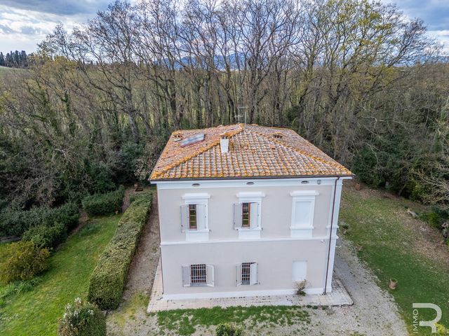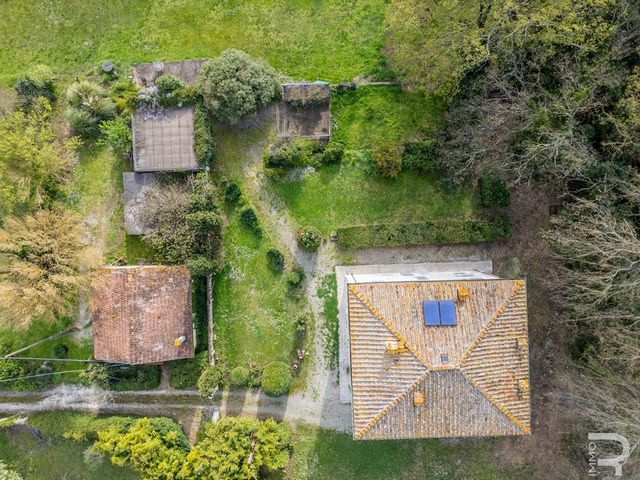 The villa has an energy class D, which indicates its high efficiency and low energy costs. It has been equipped with new windows to maximize the flow of natural light and save heat and energy. The windows themselves are precious: they offer stunning views of the surrounding countryside and fill every room in the house with natural warmth and brightness. The property comprises five spacious bedrooms, each carefully designed to provide a private retreat filled with tranquility. In addition, there are three exquisitely appointed bathrooms that combine comfort and luxury. But the real gem of this charming property is the outdoor spaces. Surrounded by 3.5 hectares of land, this villa offers plenty of space for outdoor activities or relaxing afternoons in the fresh air. There is also a charming annex that currently serves as a storage room, but which would also be ideal as an artist's studio, games room or possibly as a guest house.