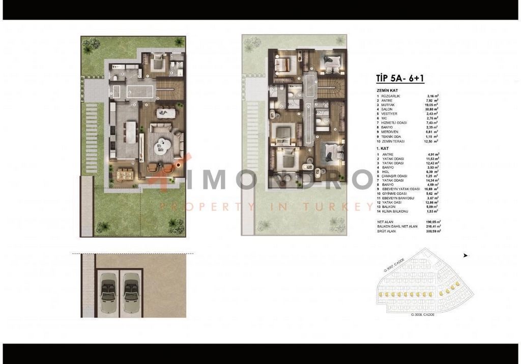 - Terrace La villa à vendre est située à Basaksehir. Basaksehir est un quartier situé du côté européen d’Istanbul. Il est considéré comme un quartier moderne et bien planifié, qui met l’accent sur la vie durable et les espaces verts. La région est connue pour ses grands complexes résidentiels modernes et ses commodités haut de gamme telles que les centres commerciaux, les restaurants et les parcs. Il abrite également un certain nombre d’écoles et d’universités, ce qui en fait une destination populaire pour les familles. Le quartier est également bien relié au reste de la ville par les transports en commun, y compris les lignes de métro et de bus, ce qui facilite les déplacements. Il est également célèbre pour sa proximité avec le troisième aéroport d’Istanbul et le canal d’Istanbul en construction. Basaksehir abrite également le stade Basaksehir Fatih Terem, qui est le stade principal de l’Istanbul Basaksehir FC, l’un des clubs de football les plus célèbres de Turquie L’autoroute E-80 d’Istanbul passe par Basaksehir et relie la région au centre-ville et à d’autres parties d’Istanbul. De plus, l’autoroute TEM permet d’accéder aux principaux quartiers d’affaires et aux attraits touristiques de la ville. Plusieurs lignes de bus et de minibus desservent également la région, ce qui facilite les déplacements La région dispose d’une variété d’hôpitaux bien équipés qui offrent des services médicaux à ses résidents et visiteurs. Ces hôpitaux, notamment l’hôpital Acıbadem Basaksehir, l’hôpital d’État Basaksehir, l’hôpital privé Başakşehir et l’hôpital Memorial Basaksehir, offrent une gamme de services médicaux tels que des consultations de médecins généralistes, des consultations spécialisées, des tests de diagnostic et des interventions chirurgicales Parmi les lieux de shopping populaires à Basaksehir, citons : Place Başakşehir : C’est un lieu de rassemblement populaire pour les résidents et les visiteurs, et il comprend une grande fontaine et une aire de jeux pour enfants Parc central de Başakşehir : C’est un grand parc avec des sentiers pédestres, des terrains de sport, des aires de jeux et un lac Place de la ville Centre commercial Başakşehir Basakşehir Merkezfendi Başakşehir 1. Centre commercial Etap L’aéroport le plus proche est à environ 0-50 km. La maison offre une superficie égale à 294 m². Nombre total de chambres 6 et 2 salles de bains. Toutes les pièces peuvent être utilisées pour dormir ou vivre. Il y a une baignoire et une douche dans la propriété et la cuisine ouverte dispose de tous les appareils à utiliser. Il y a un balcon dans la maison Il y a un jardin pour la propriété qui peut être grillé à l’extérieur Piscine rafraîchissante d’été avec bain turc relaxant Une salle de fitness est à votre disposition pour vous garder en bonne santé Des places de parking sont disponibles. Pour votre sécurité, il y a un système de sécurité et un service de surveillance 24 heures sur 24 Les propriétés à vendre sont généralement identifiées selon les normes britanniques et américaines. Les mètres carrés nets sont calculés sauf pour le balcon. En conséquence, 10 à 15 % du mètre carré total doivent être déduits. Lors de la signature du contrat d’achat de l’appartement, les frais de vacance de l’appartement seront facturés à 0 %, TVA comprise, sur le prix d’achat. IS-1898-7
