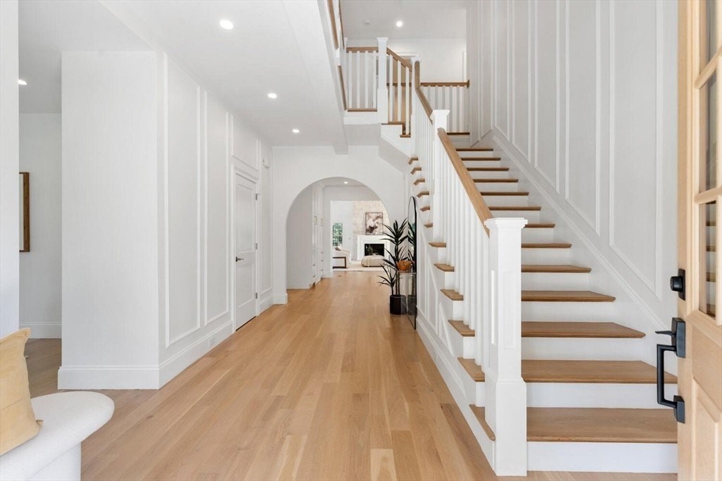 - Garage View more View less An extremely rare new construction in the Flats, this stunning 6BD/4.5BA home is a ground-up rebuild blending modern luxury with timeless warmth in one of Winchester's most coveted neighborhoods. Designed for elevated living, it features a chef's kitchen with quartz counters, custom cabinetry, a large island, and built-in bar, opening to a sunlit dining area ideal for both casual meals and elegant entertaining. The soaring family room stuns with cathedral ceilings, exposed beams, and a floor-to-ceiling stone fireplace-perfect for cozy evenings or lively gatherings. The serene primary suite offers a wood-accented ceiling, sitting area, and spa bath with dual vanities and a walk-in shower. Wide-plank oak floors, curated finishes, and thoughtful design details enrich every corner of the home. Located just moments from Winchester Center, commuter rail, top-rated schools, and scenic parks, this is a once-in-a-generation opportunity to own a truly exceptional home in the heart of the Flats.