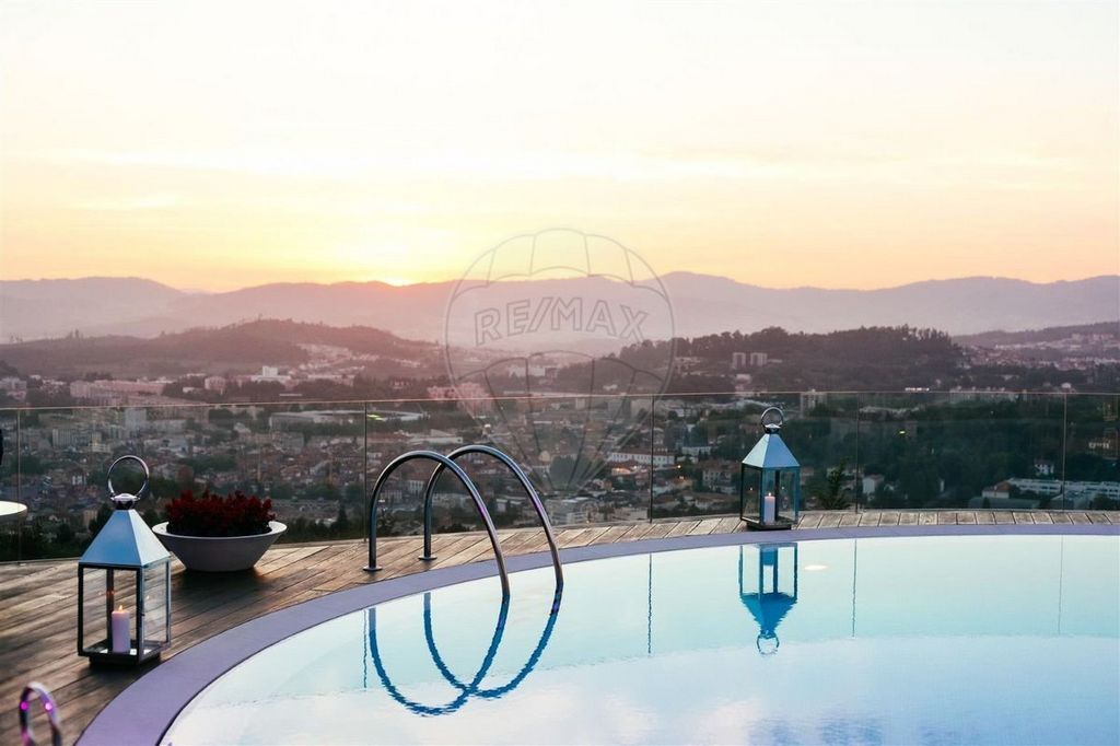This property is surrounded by gardens with sumptuous landscaping, which also features an outdoor swimming pool with a unique and breathtaking view of the city of Guimarães.