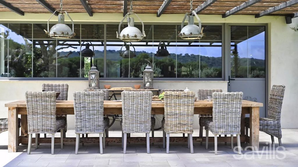 - Garage View more View less À seulement quelques minutes de la plage de Pampelonne, découvrez cette magnifique ferme entièrement réhabilité. Villa principale : Dès l'entrée, un vestiaire avec toilettes vous accueille. La pièce de vie spacieuse comprend un séjour chaleureux, une salle à manger conviviale et une cuisine entièrement équipée. La villa offre également une chambre en suite avec salle de douches et toilettes puis une sublime chambre principale avec une salle de bains complète (douche, baignoire et toilettes) ainsi qu'un dressing. Un bureau, une buanderie, un local technique et un large garage attenant complètent les aménagements intérieurs. La terrasse extérieure est idéale pour les repas en plein air. Maison d'amis : Cette annexe dispose de trois chambres indépendantes, chacune avec sa propre salle de douches et toilettes, garantissant confort et intimité à tous les invités. Un atelier et un garage fermé. Espaces extérieurs : Un pool house avec une douche extérieure. La piscine de 15 mètres sur 4 mètre, invite à la détente sous le soleil méditerranéen. Large parking voitures, idéal pour recevoir. Toutes les pièces sont climatisées pour votre confort. Un splendide terrain plat de plus d'un hectare, offre une vue imprenable sur la campagne environnante, une superbe pinède de Pins parasols et un dégagement sans égal. Idéal également pour les enfants.