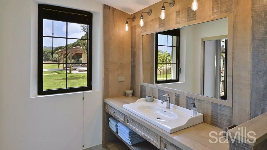- Garage Само на петнадесет минути пеша от плажа Пампелон открийте тази великолепна очарователна реновирана фермерска къща, идеално разположена. Основна вила : При влизане ви посреща гардеробна с тоалетна. Просторната всекидневна включва приветлив салон, трапезария и напълно оборудвана кухня. Вилата предлага и самостоятелна спалня с душ кабина и тоалетна, възвишена основна спалня с напълно оборудвана баня (душ, вана и тоалетна) и съблекалня. Офис, перално помещение, мокро помещение и голям гараж допълват вътрешното оформление. Външните тераси са идеални за хранене на открито. Пристройка: Тази пристройка разполага с три самостоятелни спални, всяка със собствена баня и тоалетна, гарантиращи комфорт и уединение за всички гости. Ателие и заключващ гараж. Външни площи: Къща с басейн и душ на открито. Плувен басейн с размери 15 х 4 метра, заобиколен от тераса, ви кани да се отпуснете под средиземноморското слънце. Голям паркинг. Всички стаи са климатизирани за Вашия комфорт. Прекрасен равен парцел от над един хектар, с непрекъсната гледка към околността, превъзходна борова гора и ненадминати гледки. Идеален и за деца.