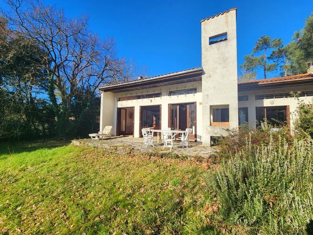 ILE D'OLERON - En bordure de mer, double maison de vacances familiale, érigée en surélévation dans les années 70, pour une superficie totale de 200m². Exposition Sud-Sud Est, situation idéale à 500m de la plage, dans un secteur prisé, La Biroire sur la côte ouest de l'ile d'Oléron. L'ensemble immobilier incluant 2 maisons avec leurs entrées distinctes se compose de 2 larges pièces à vivre salon/séjour avec cheminées chacune, 2 espaces cuisine dont 1 ouverte sur le séjour, 2 mezzanines, 5 chambres, 1 chambre cabine, 2 salles d'eau et 1 salle de bain avec baignoire et douche, 3 WCs. 2 buanderies attenantes de 5m² environ chacune complètent ce bien. Le terrain non clôturé se compose de 7 parcelles pour une contenance totale de 3828 m² dont une partie boisée. Très joli potentiel pour cette maison jumelée atypique avec de beaux volumes, de grandes ouvertures sur les espaces à vivre, idéale pour projet d'investissement familial au bord de la mer dans un endroit calme et reposant avec vue sur les vignes et d